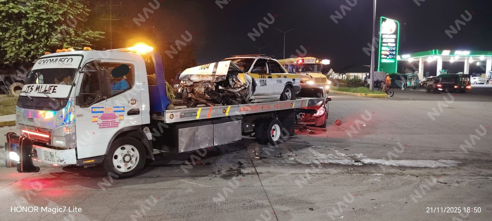 Tapachula, Chiapas.– Un choque múltiple registrado la noche de este viernes 21 de noviembre, paralizó por varios minutos la circulación en el Libramiento Sur Poniente, dejando como saldo daños materiales de gran magnitud y la detención del conductor de un taxi, presuntamente por conducir bajo los efectos del alcohol.