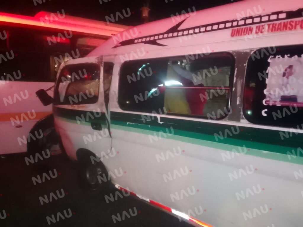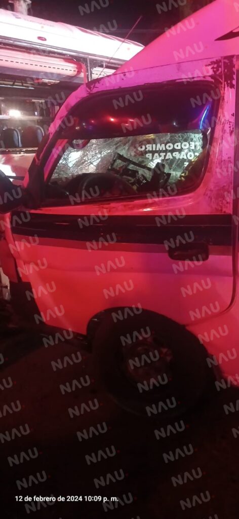 Tapachula, Chiapas. Una colisión entre un colectivo de la ruta 5 de febrero y un autobús de pasajeros, ha dejado a una mujer gravemente herida y a otro hombre con golpes en diferentes partes de su cuerpo. El incidente ocurrió la noche de este lunes en la carretera Nueva Alemania a Tapachula, a pocos metros de la glorieta del club Campestre.