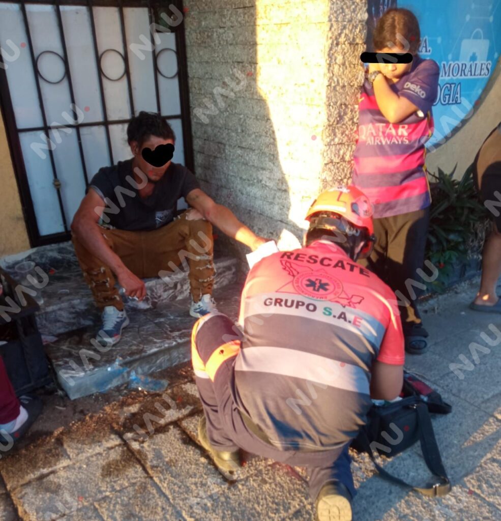 De acuerdo con el reporte, el incidente fue atendido por la Unidad Motorizada URM-04 de Ambulancias Grupo S.A.E., cuyos dos elementos a bordo arribaron de manera inmediata al sitio señalado. Al llegar, localizaron a un masculino identificado como José “N”, de 30 años de edad, quien se encontraba sentado sobre la banqueta.