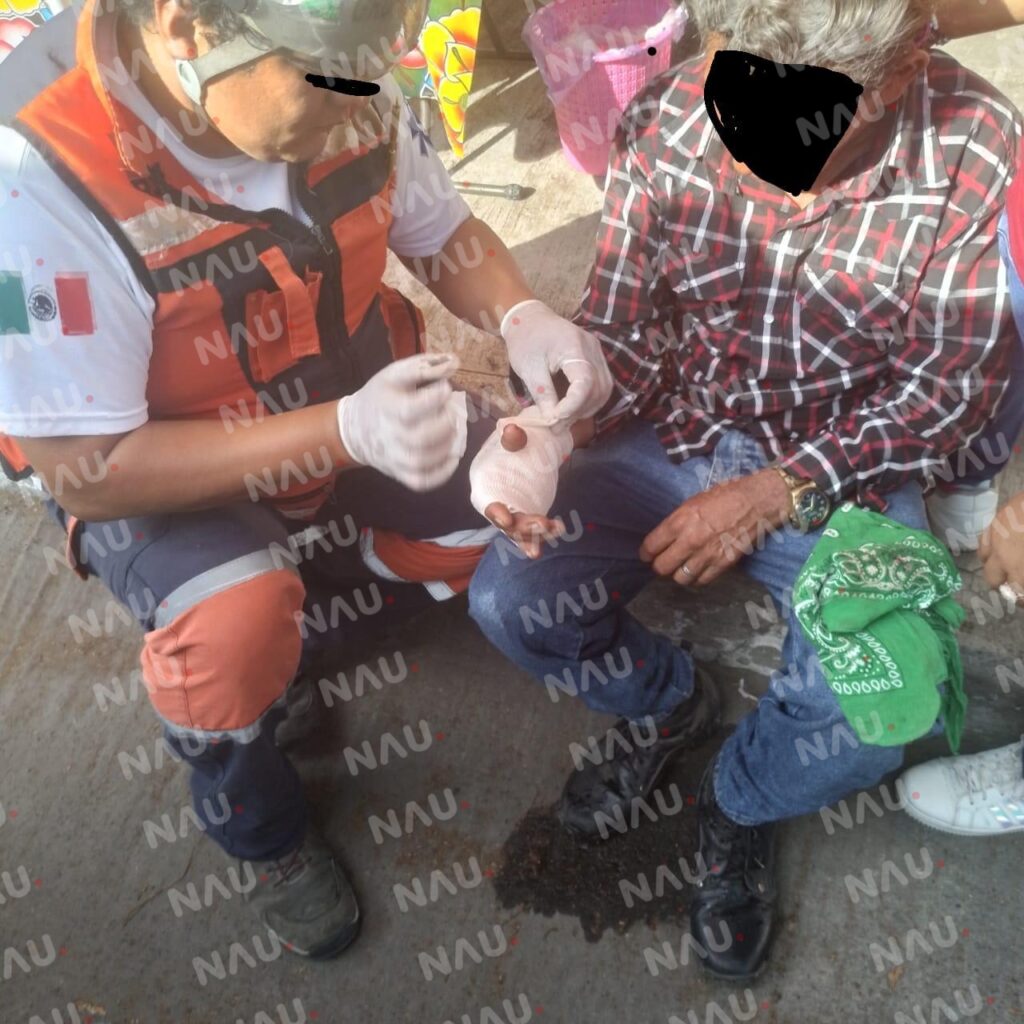 Al ser revisado, se confirmó la presencia de la herida cortante en la mano derecha de Sixto N. La atención inmediata fue proporcionada por la unidad UR-03 de Grupo SAE, que llegó al lugar con 2 elementos adicionales. A pesar de la intervención, el paciente decidió quedarse en el lugar a solicitud propia.