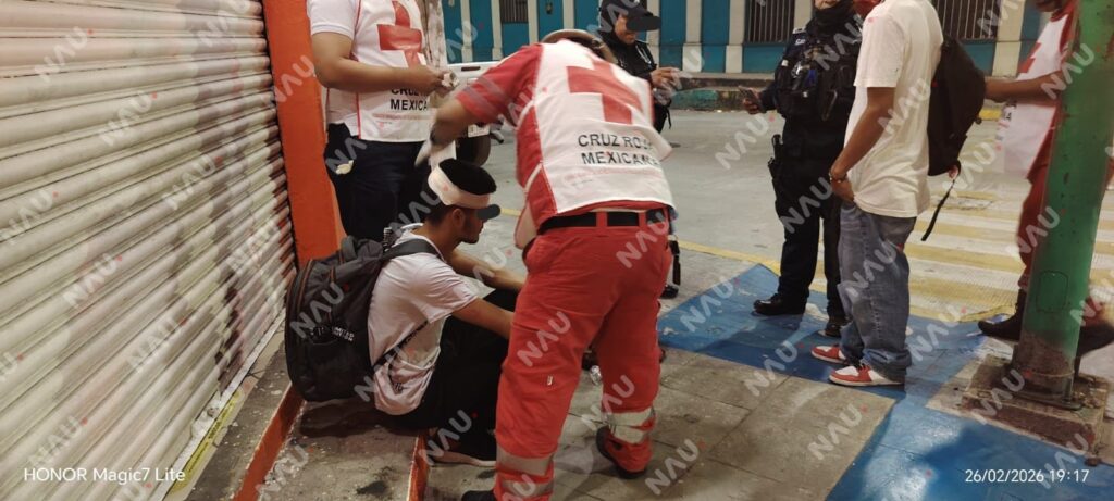 Tapachula, Chiapas.– Un hombre de entre 25 y 30 años de edad resultó con una lesión a nivel craneal, presuntamente tras participar en una riña, la noche del miércoles 26 de febrero de 2026, en calles céntricas de la ciudad de Tapachula.