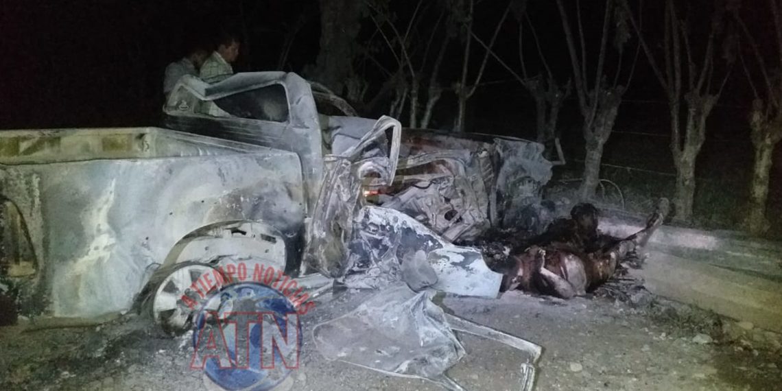 El percance se registró frente al rancho La pochota, donde los agentes y personal de Protección Civil, así como un grupo de personas, apagaron el fuego, pero no pudieron hacer nada para salvar la vida de las dos personas.