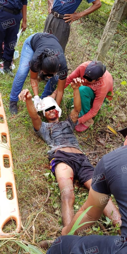 Personal de Protección Civil de Mazatán arribaron al lugar, donde atendieron a Daniel n de 23 años de edad, quién presenta un balazo en la parte de atrás de la cabeza del lado izquierdo y el otro impacto en la pierna del lado izquierdo.