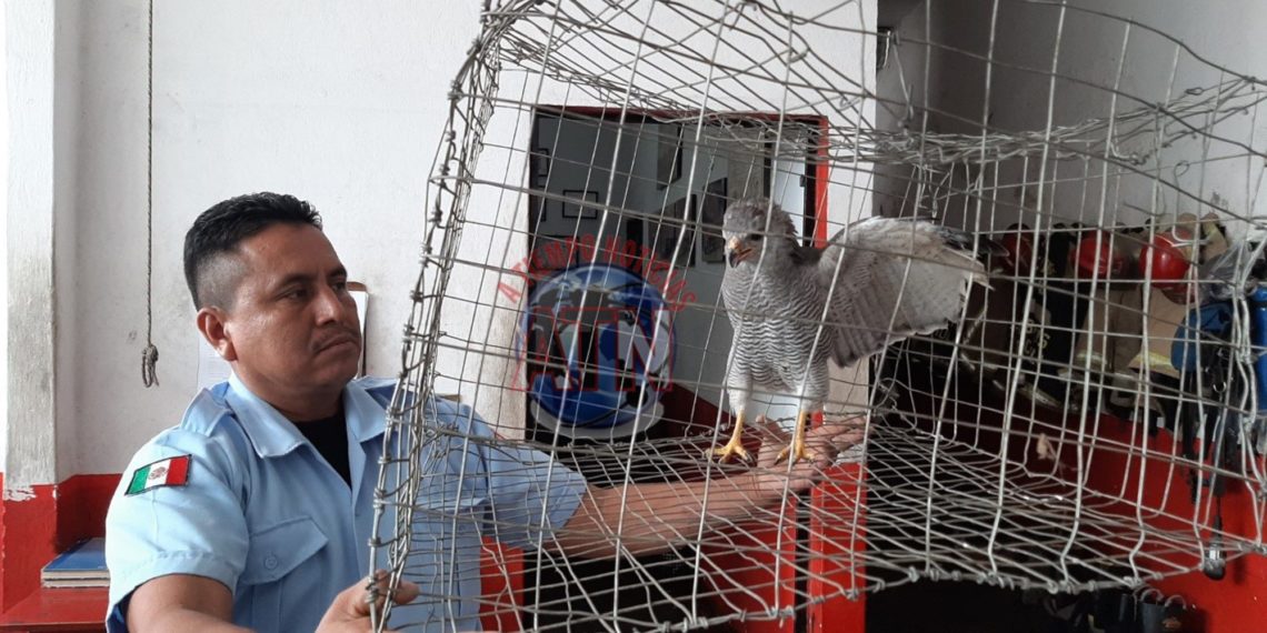El personal del cuerpo de bomberos al mando del comandante Iván Estrada Rosales, acudieron al lugar y con la autorización de los dueños de la casa, capturaron en el patio trasero al gavilán.