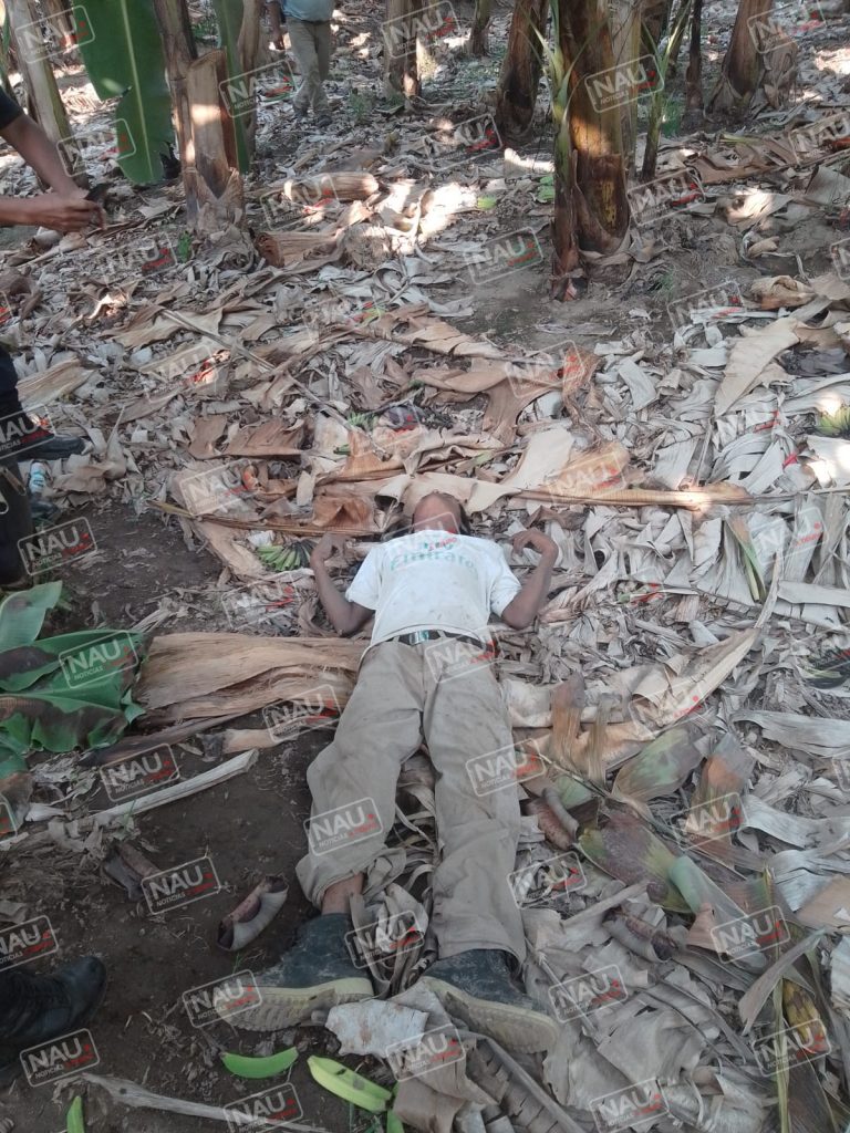 Elementos de las diferentes corporaciones policiacas se trasladaron al lugar, donde localizaron dentro de una de unas plantaciones de plátano a una persona sin vida del sexo masculino.