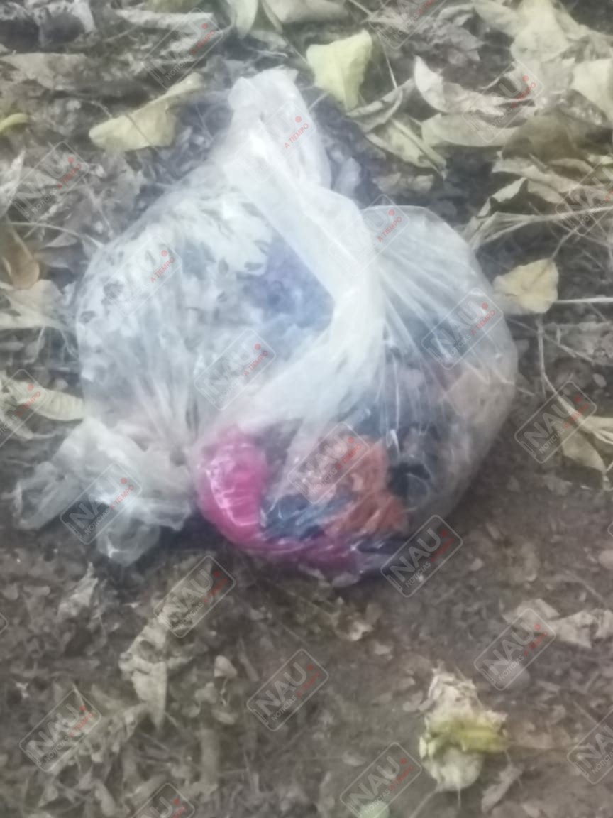 Los restos humanos se encontraron aproximadamente a un kilómetro de lugar, en una bolsa tipo nailon que en su interior contiene ropa de dama y al parecer viseras o placenta, desconociendo si se trata del mismo cuerpo.