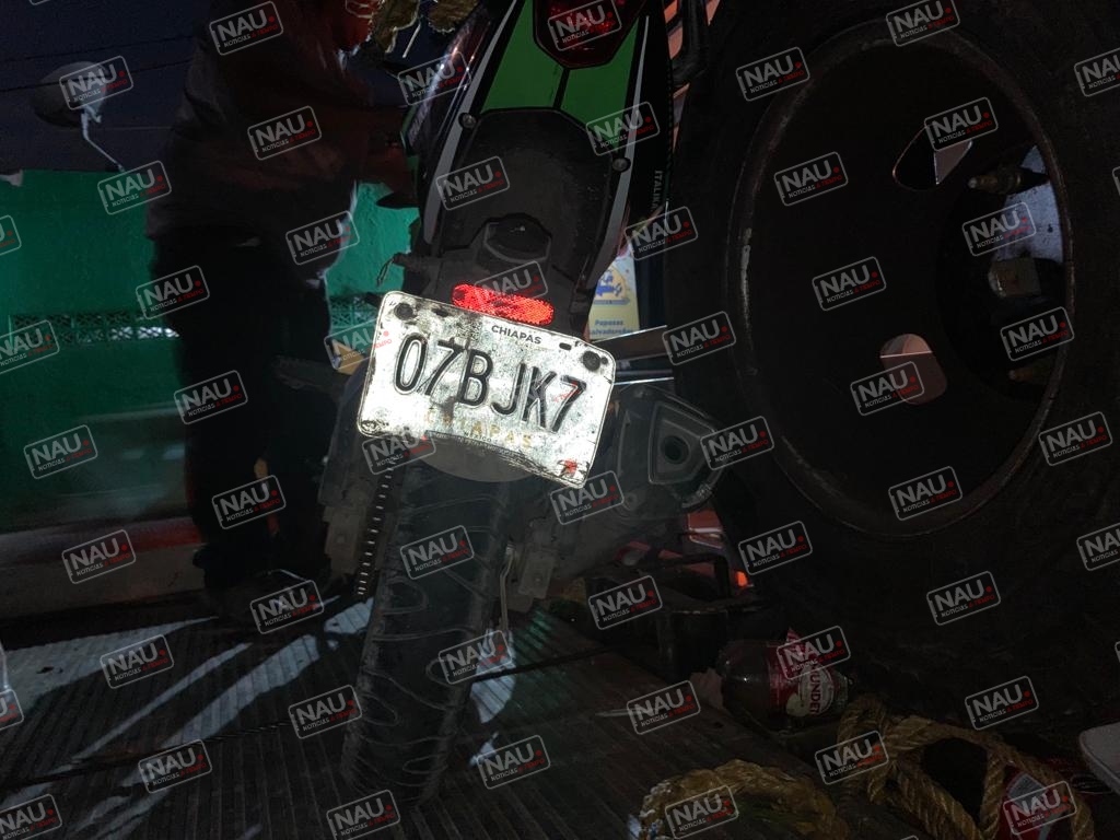 Se dio a conocer qué el conductor de la motocicleta se desplazaba de Sur a Norte Sobre la avenida Villa de las Flores, a bordo de la motocicleta Italika color verde con negro, con placas del estado de Chiapas.