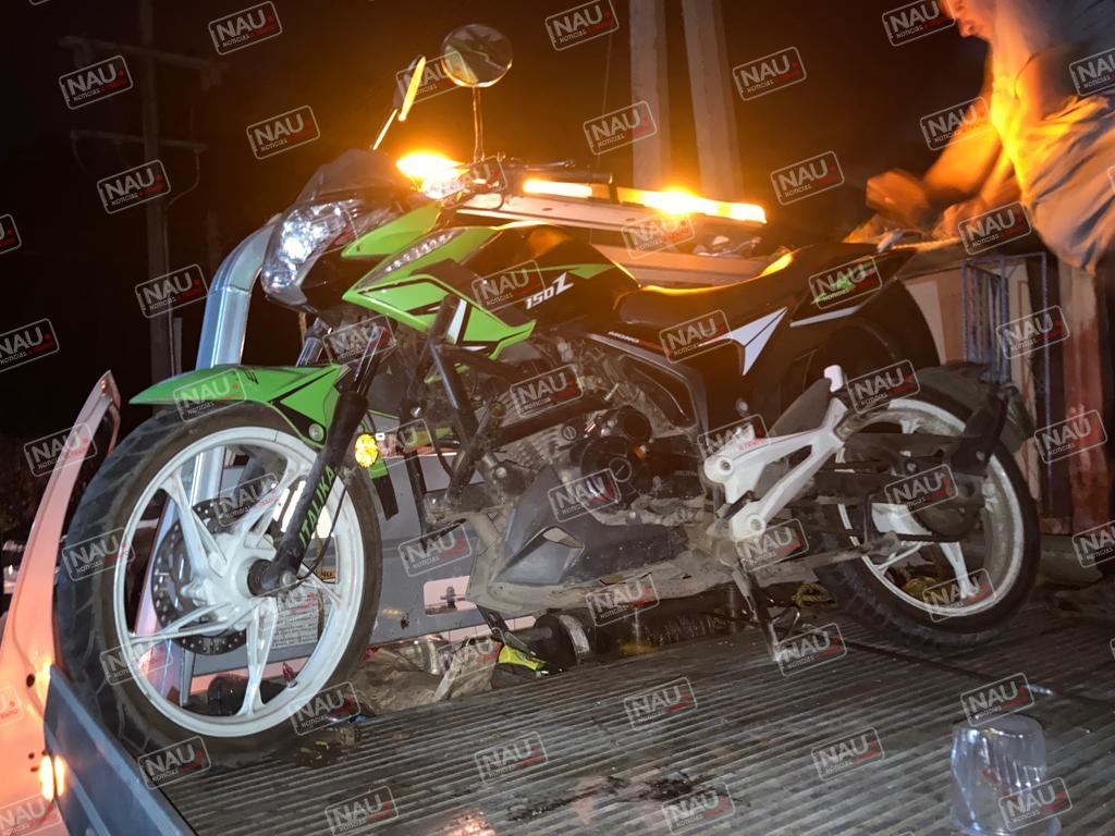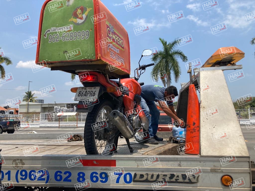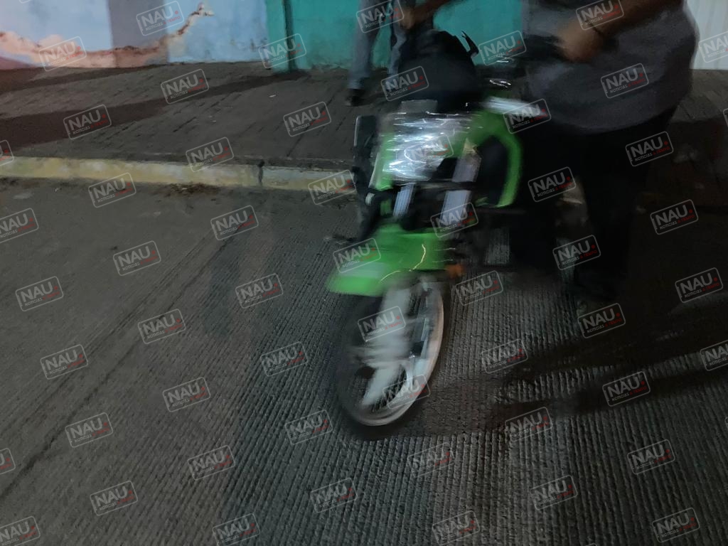 La motocicleta es marca Italika color azul 125 sin placas de circulación, conducido por Henry n de 21 años de edad, quién resultó lesionado en la clavícula derecha y escoriaciones en ambas rodillas y brazos, mismo que fue valorado por paramédicos de la Cruz Roja Mexicana.