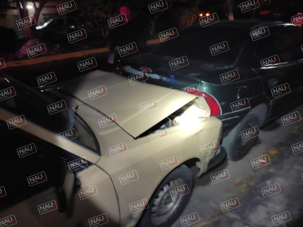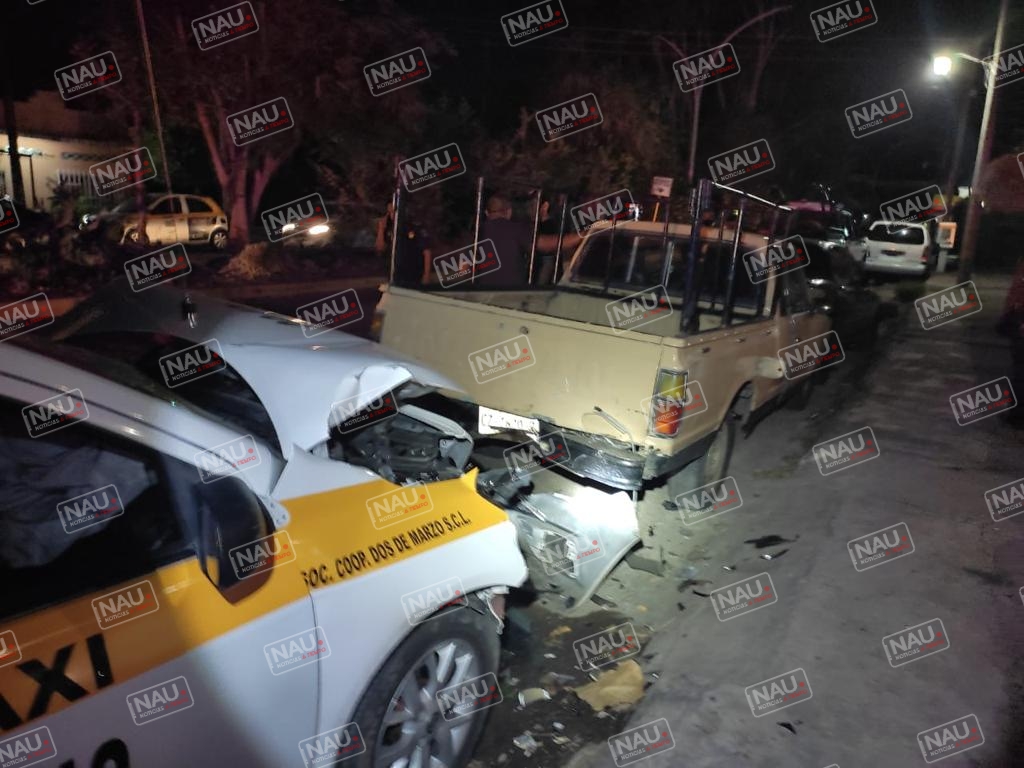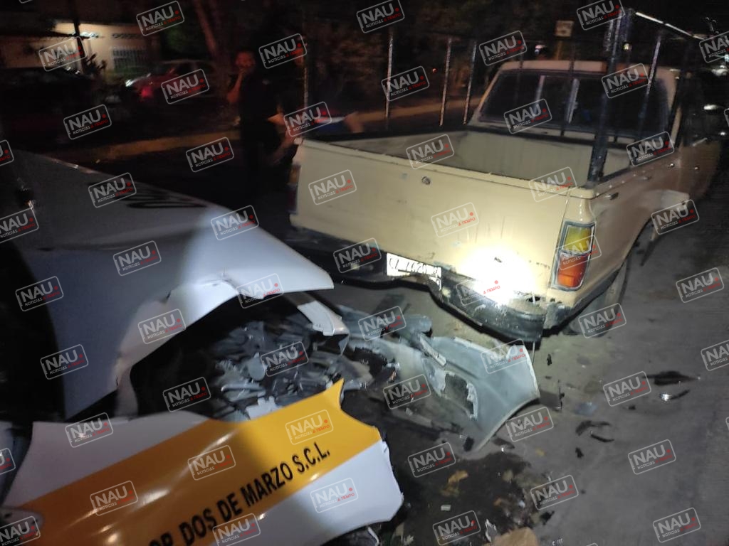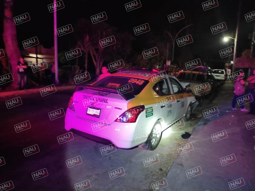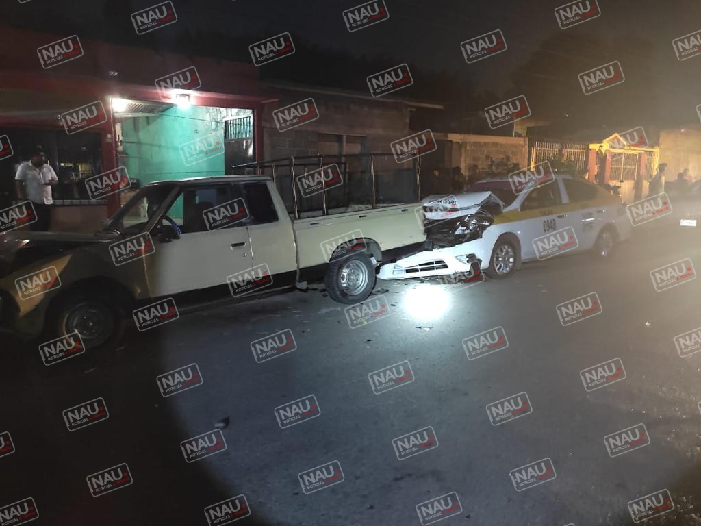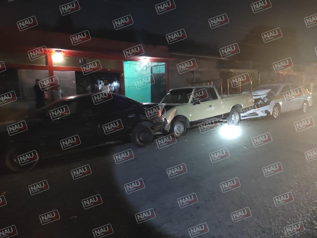 El taxista al parecer venía viendo el teléfono y se chocó en la parte trasera de la camioneta estaquita Nissan de color crema, que estaba estacionado afuera del domicilio del propietario y a su vez este impacta el vehículo color verde en la parte trasera con placa del estado de Chiapas, de la marca Chrysler.