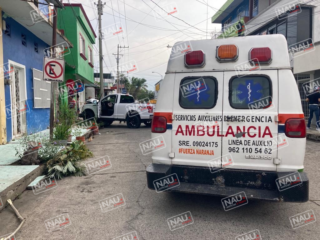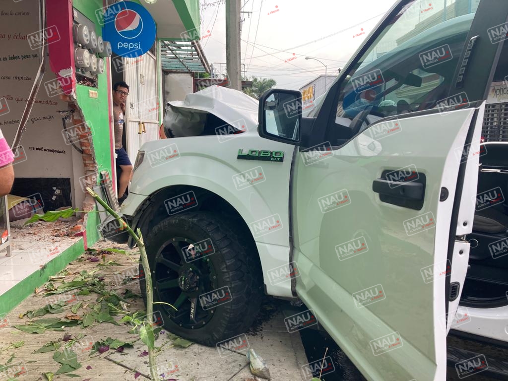 El vehículo se encontraba dentro del domicilio, solo que el chofer intentó arrancar el carro y aceleró, perdiendo el control y se estrelló sobre la vivienda de enfrente color verde, ubicada en la segunda avenida Norte, qué es una tienda de venta de artículos varios, dónde se encontraba la señora Lorena N., quien salió con crisis nerviosa y fue trasladada a una clínica particular.