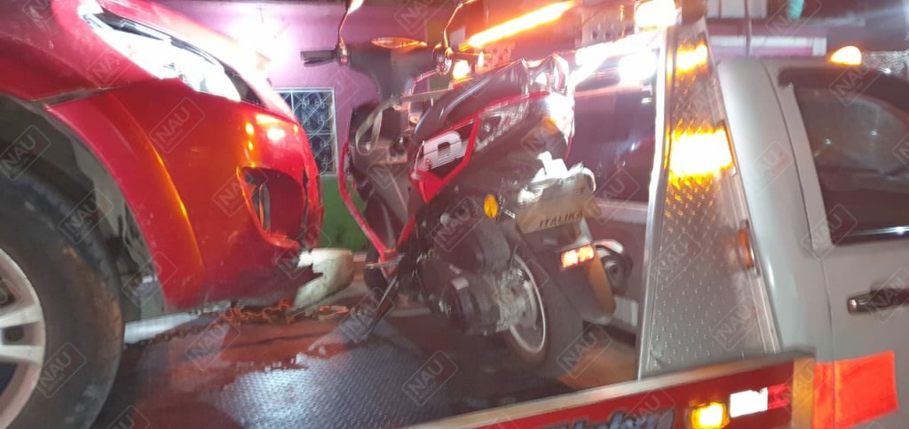 Mapastepec, Chiapas. La noche del pasado domingo, un menor de 15 años de edad, resultó con lesiones en diferentes partes del cuerpo, luego de chocar su motoneta en que se desplazaba, contra una camioneta.