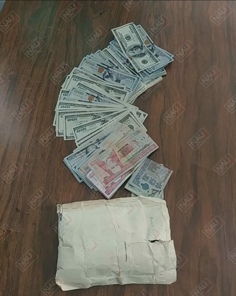 A la persona se le preguntó de donde traía los dólares, pero no supo responder, por ello fue asegurado y trasladado a la fiscalía del ministerio público, por el delito de posesión de recursos presuntamente de procedencia ilícita, al no acreditar su legal procedencia.