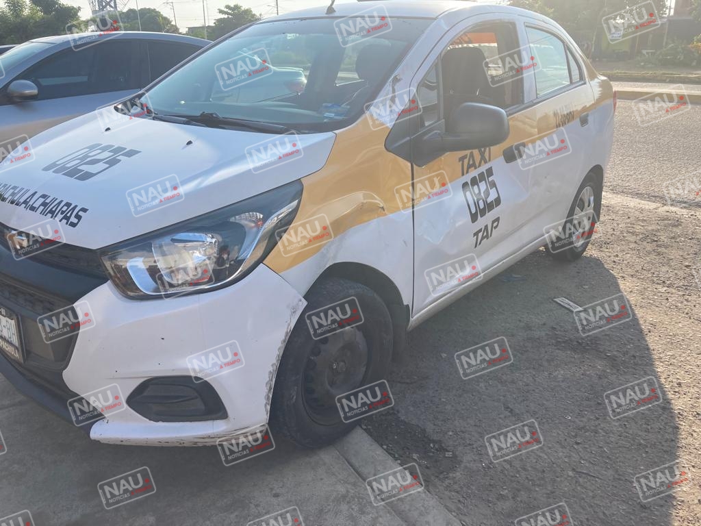 Tapachula, Chiapas. El exceso de velocidad y la falta de precaución del conductor de un vehículo en su modalidad de taxi, impactó al conductor de una motocicleta, hechos ocurridos en la Colonia Morelos de Tapachula.