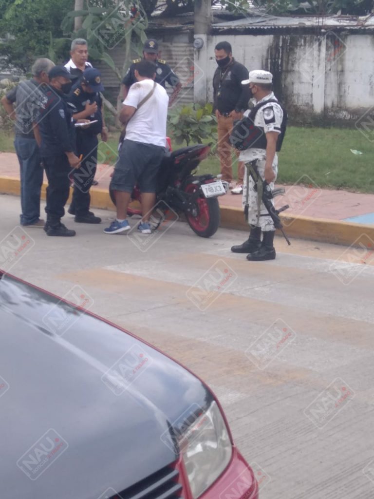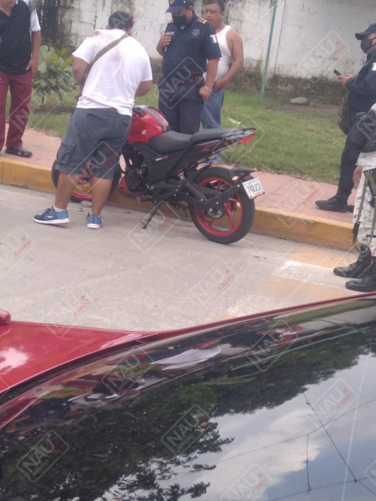 Por fortuna, el conductor de la motocicleta logró saltar, fue que resultó con lesiones leves en el brazo, al lugar arribaron paramédicos de la Cruz Roja, donde atendieron al motociclista, pero las lesiones fueron leves.