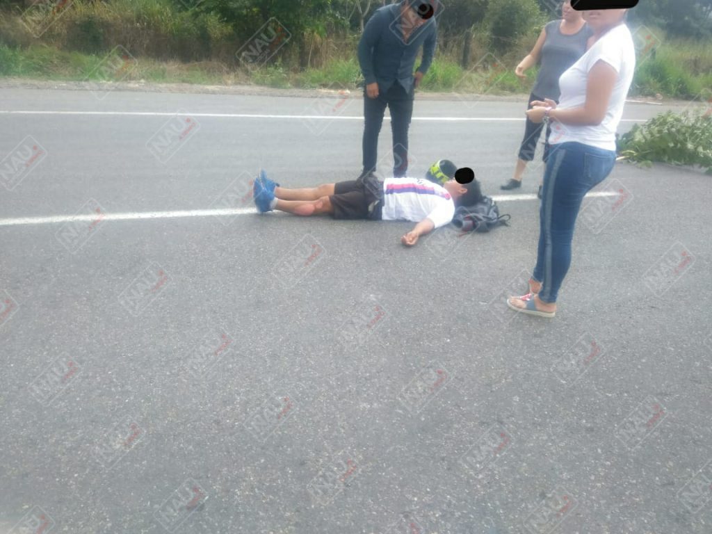 Tapachula, Chiapas. Un motociclista resultó con lesiones en diferentes partes del cuerpo, luego de que fue impactado por un vehículo sobre la carretera costera, a la altura de entrada a la Colonia 18 de Octubre.