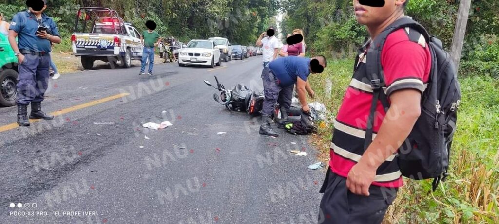 Alrededor de las 16:30 horas, el conductor de una motocicleta Italika de color negro, presuntamente sin mantener la distancia adecuada, impactó violentamente la parte trasera de un Nissan Tsuru de color verde, utilizado como taxi de ruta foránea.