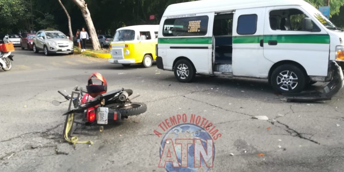 Tapachula, Chiapas. – El conductor de una combi colectiva de la ruta Unidad Administrativa – centro, hizo corte de circulación a un motociclista, en el momento que salía de la Glorieta de la Unidad Administrativa.