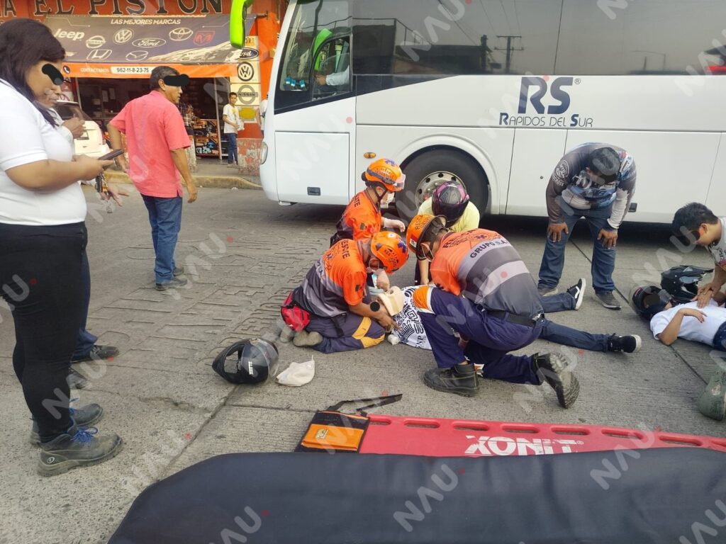 Motociclista menor de edad sufre fractura expuesta tras choque con colectivo en Tapachula