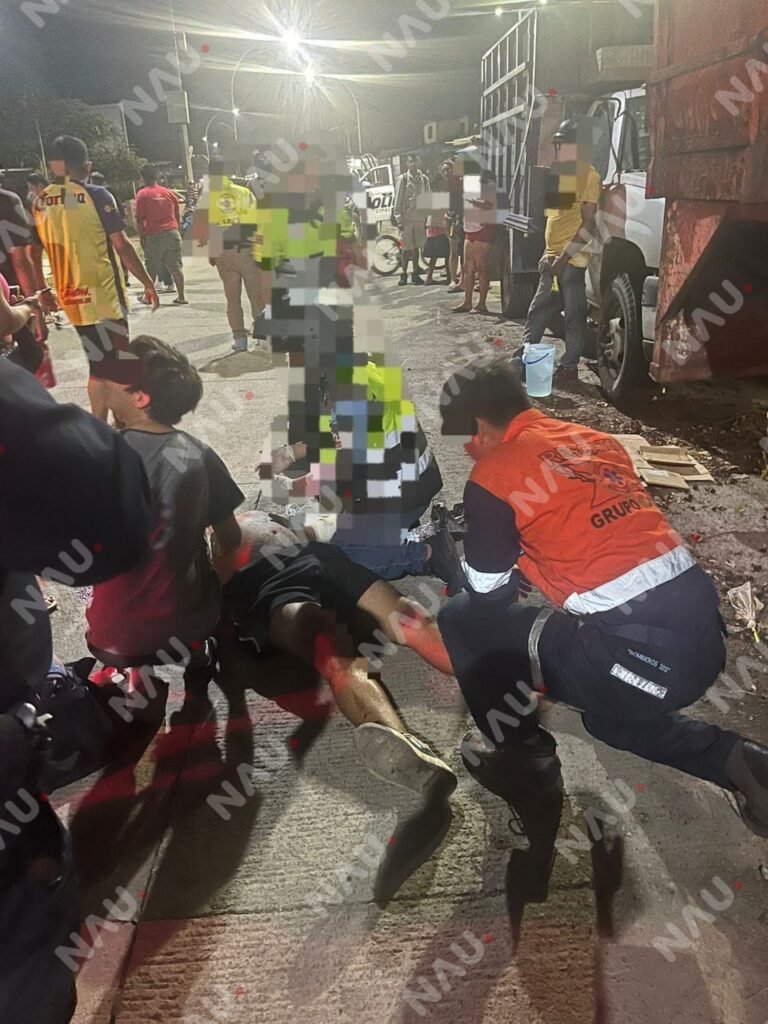 Al arribar al lugar, los socorristas localizaron a quien fue identificado como Jorge “N”, de aproximadamente 30 años de edad, tendido sobre el pavimento en posición decúbito supino. A la valoración inicial, el masculino presentaba algia en tórax, múltiples heridas abrasivas en extremidades, así como fractura de radio y cúbito con sangrado activo. Además, se reportó posible fractura entre la quinta y sexta parrilla costal posterior del lado izquierdo.