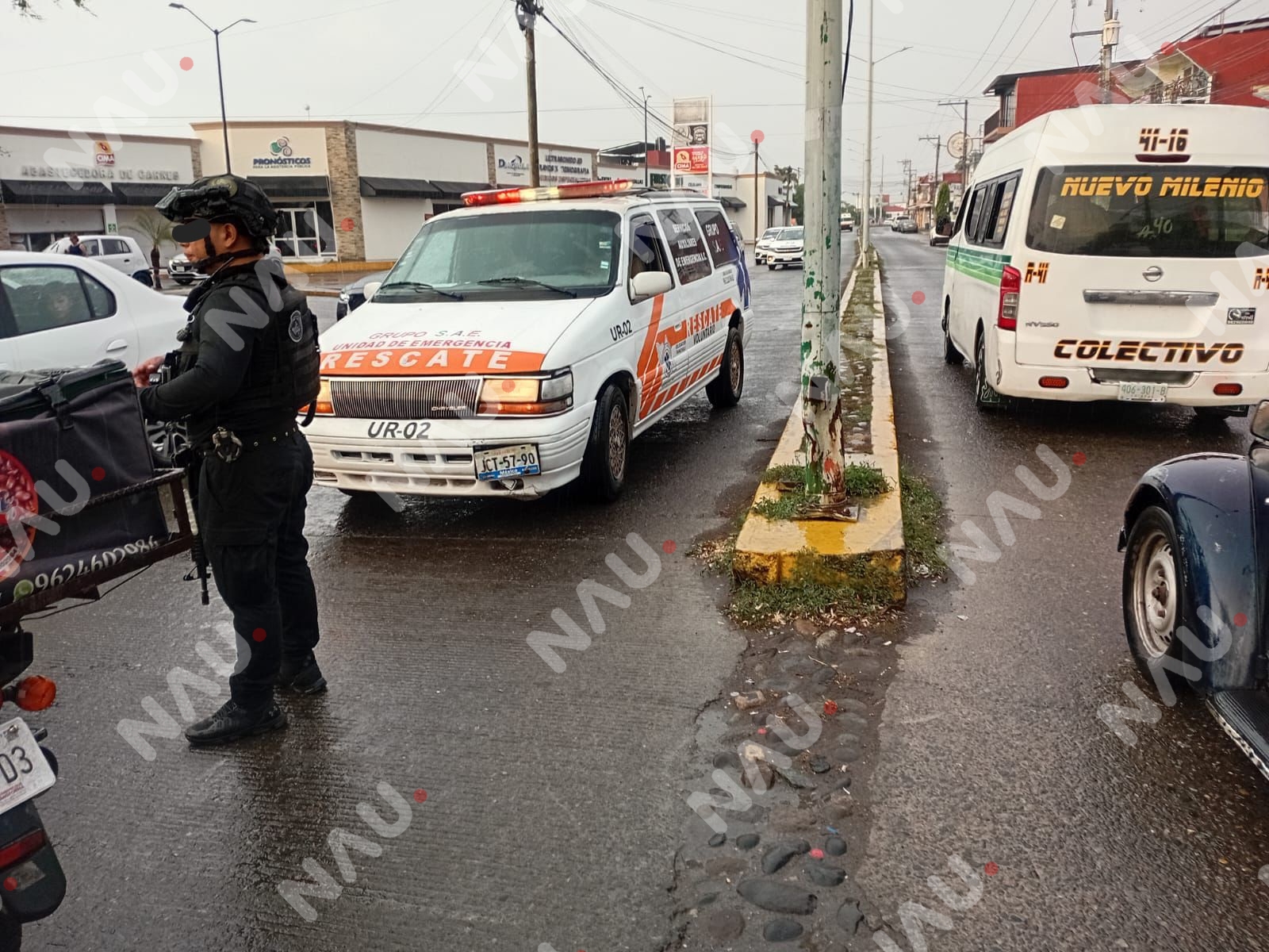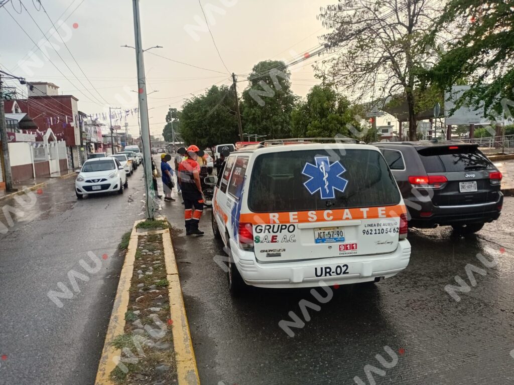 Tras el impacto, el motociclista quedó lesionado en el sitio, por lo que testigos solicitaron el apoyo de cuerpos de emergencia. Elementos del Club de Auxilio y Rescate de Chiapas A.C. (CARCH 04 Tapachula) acudieron como primeros respondientes y brindaron atención prehospitalaria al joven.
