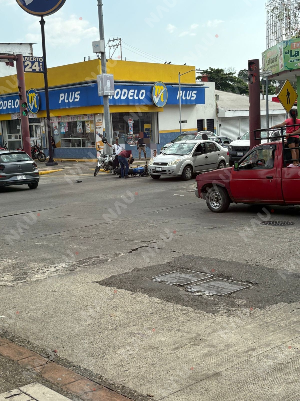 Colisión entre motocicleta y automóvil deja una persona herida en el sur de Tapachula