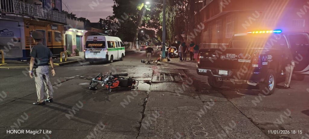 De acuerdo con los primeros reportes, una camioneta Nissan Kicks, color gris, circulaba sobre la 18 calle Oriente en dirección de oriente a poniente cuando, al llegar al cruce con la séptima avenida Sur, fue impactada en la parte trasera del lado derecho por una motocicleta Italika FT 150, color rojo.