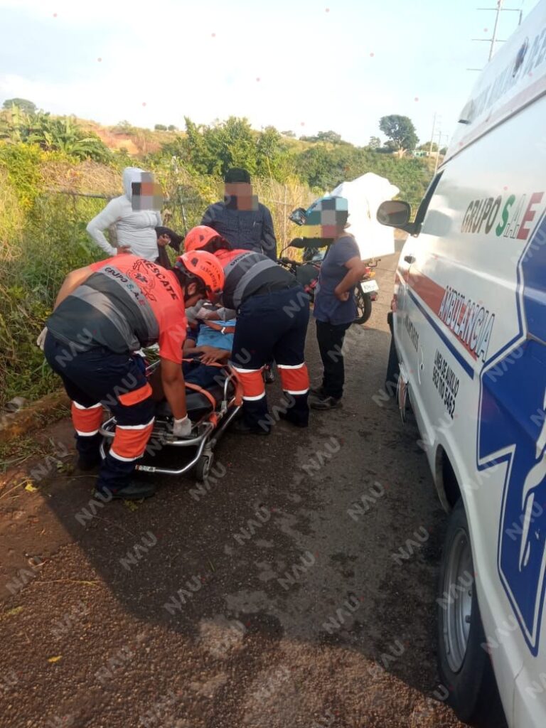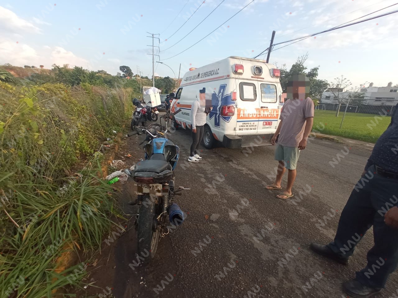 Tapachula, Chiapas; sábado 27 de diciembre de 2025.— Un accidente vehicular dejó como saldo a un joven motociclista lesionado la tarde de este sábado en la zona conocida como Campos en Vida, al norte de la ciudad de Tapachula.