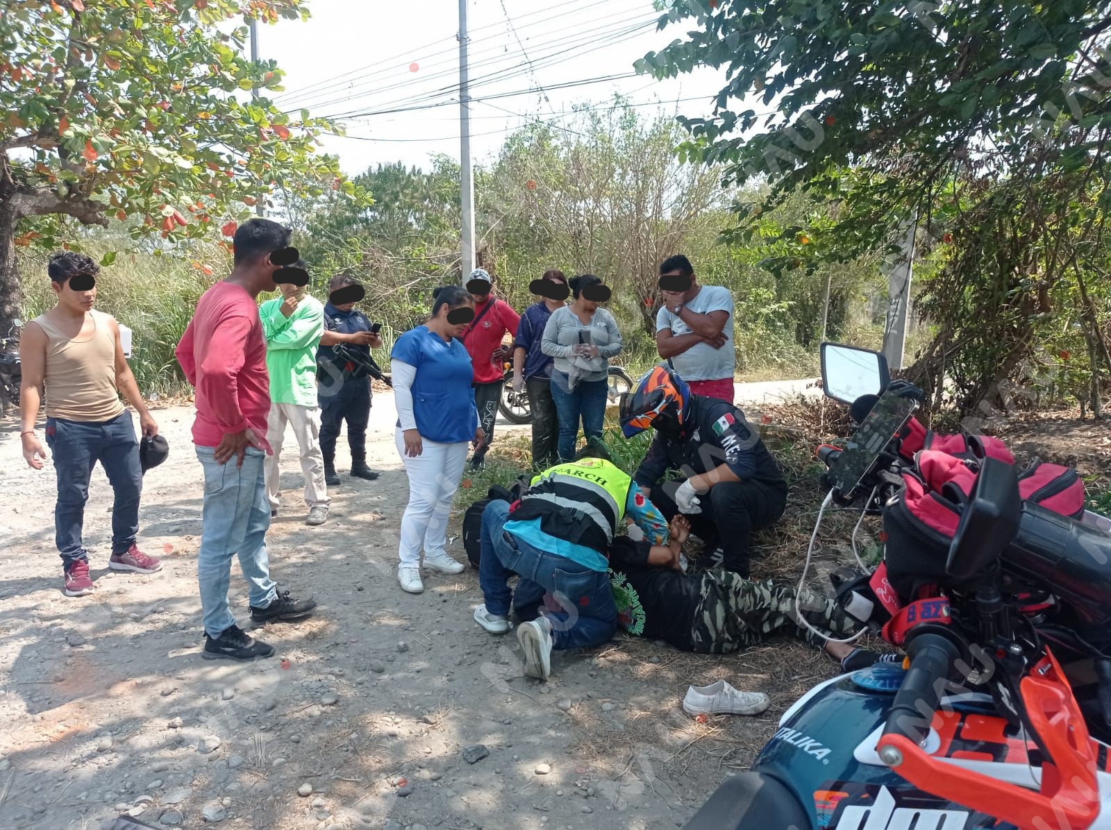 Al sitio acudieron paramédicos del Club de Auxilio y Rescate de Chiapas (CARCH 04 Tapachula), quienes brindaron atención prehospitalaria y estabilizaron al lesionado en el lugar del accidente. Posteriormente, familiares del afectado, originario del ejido Playa Linda, decidieron trasladarlo por sus propios medios a un hospital cercano para una revisión médica más detallada.
