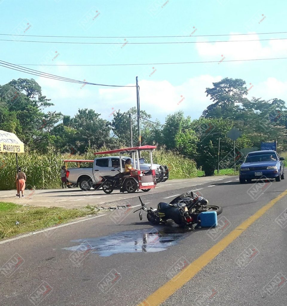 Alrededor de las 10:00 de la mañana, reportaron el accidente a la altura del crucero del ejido Medio Monte, sobre la carretera Tuxtla Chico – Talismán, donde localizaron una motocicleta marca Italika 125, sin placas.