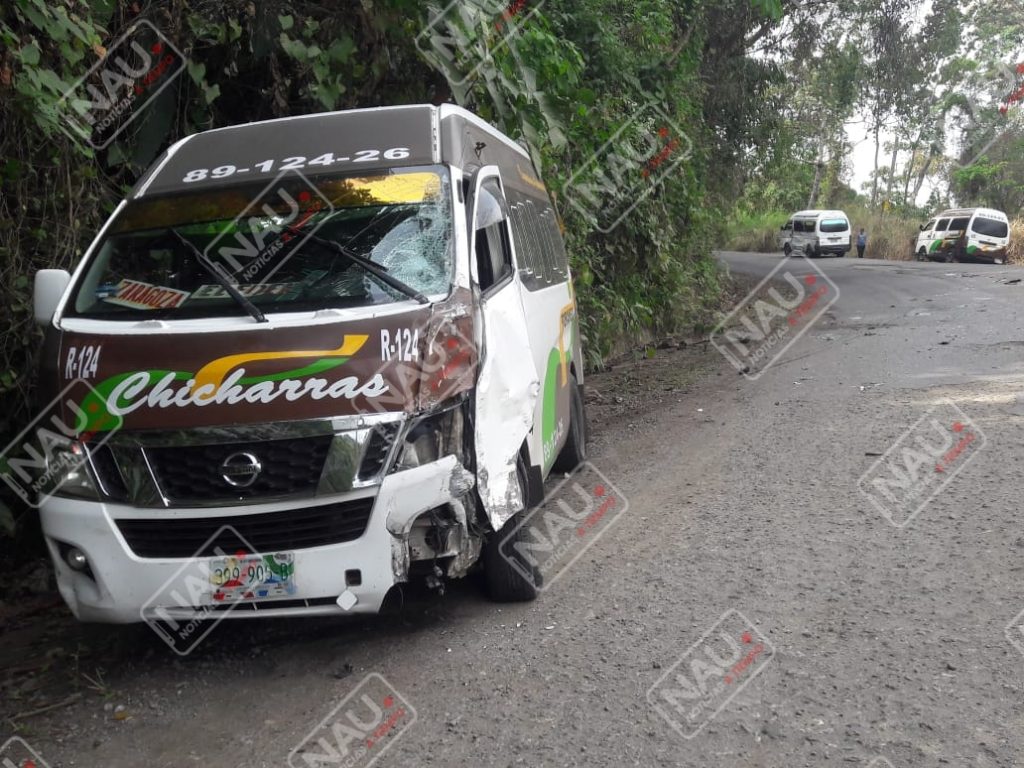 Alrededor de las 8:00 de la mañana de este domingo, reportaron al centro de emergencias 911, el choque de dos combis en el tramo carretero Tapachula a Nueva Alemania, a la altura del ejido congregación San Francisco, a la altura de la poza azul.