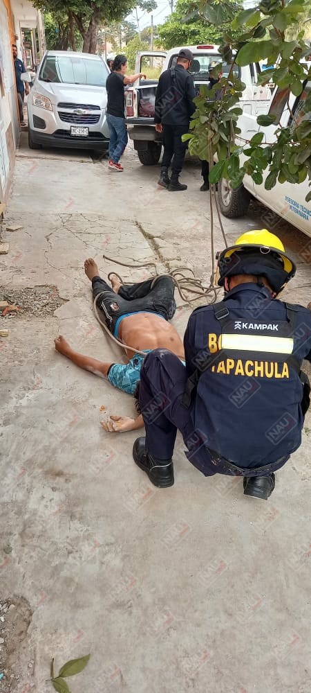 TAPACHULA, CHIAPAS. Un migrante presuntamente salvadoreño, falleció al electrocutarse en una obra de construcción en la Calle priva Panteón jardín, esquina Macedonio Alcala, del Fraccionamiento Magisterial.