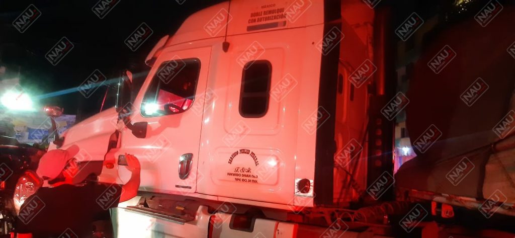 Tapachula, Chiapas. Una joven mujer resultó lesionada, luego de chocar su vehículo contra un pesado tráiler, sobre la 4a avenida sur prolongación, como referencia a la altura de una conocida empresa de comercializadora de cartón.
