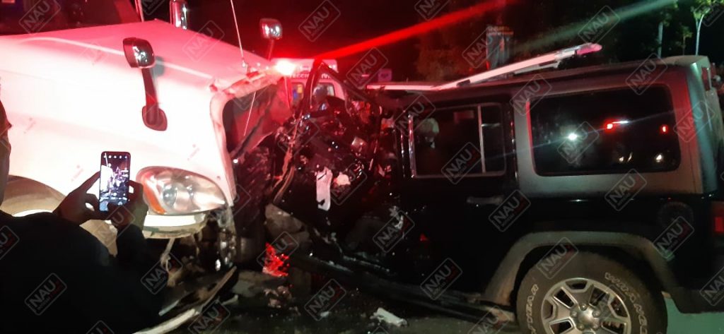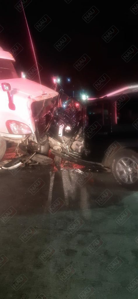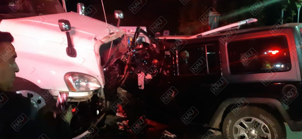 Al llegar a la altura del retorno localizado frente a dicha empresa, fue embestida en el costado izquierdo delantero por un pesado tráiler Kenworth de color blanco, que venía de sur a norte, e intentó dar vuelta hacia la izquierda sin precaución.