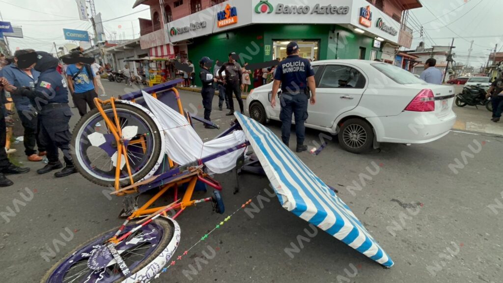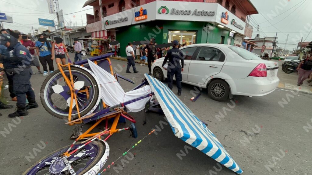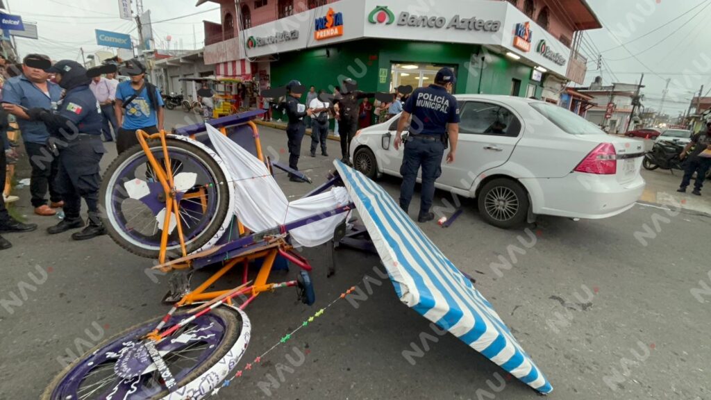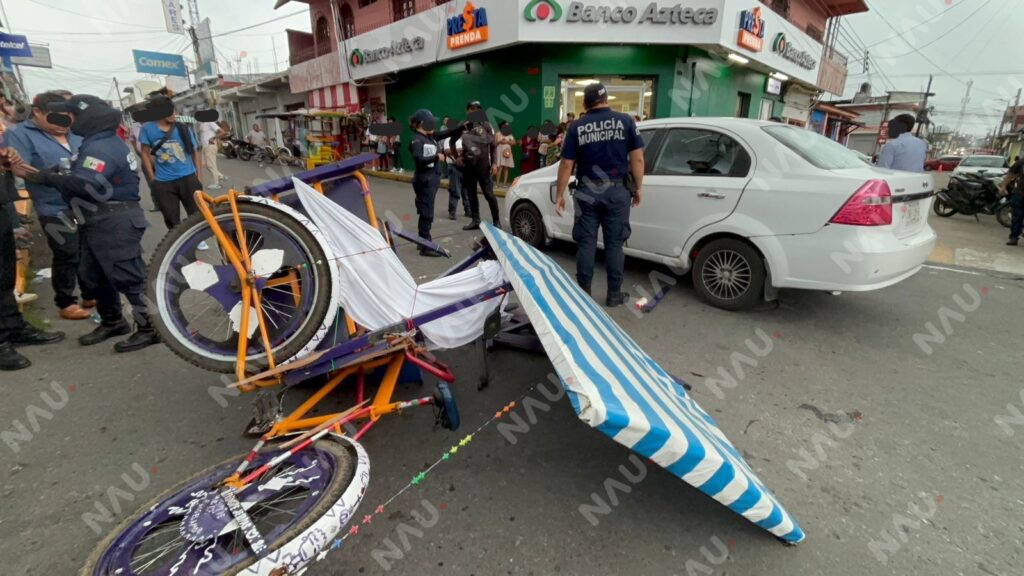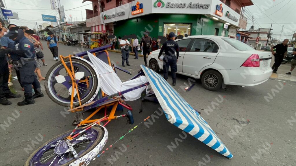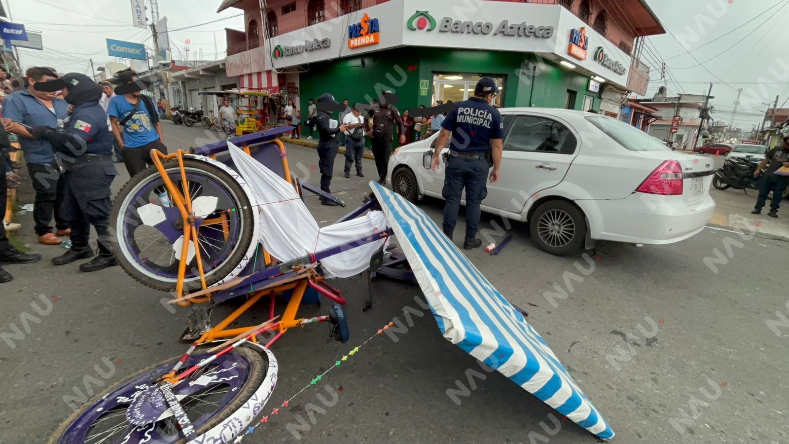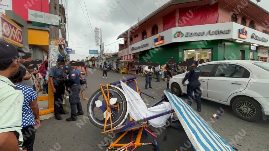 De acuerdo con las primeras versiones, el conductor del Aveo intentó liberar el paso de un vehículo que transitaba de poniente a oriente sobre la Cuarta Calle Oriente. En su maniobra, invadió el carril contrario, lo que provocó que el triciclo impactara en el costado izquierdo del automóvil.