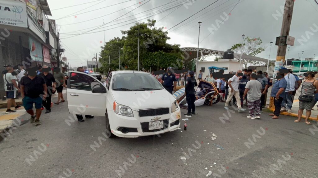 El percance se registró alrededor de las 14:15 horas de este domingo, cuando el automóvil Aveo circulaba de sur a norte sobre la Central Avenida Sur, mientras que el triciclo avanzaba en sentido contrario, de norte a sur, transportando a una pasajera de entre 25 y 30 años de edad.