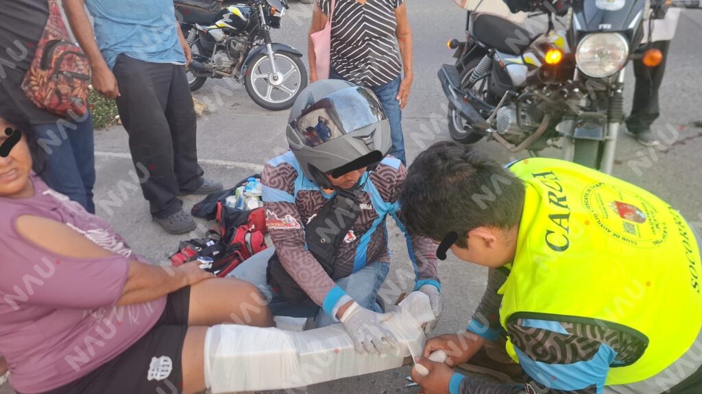 Al lugar acudieron paramédicos del Club de Auxilio y Rescate de Chiapas (CARCH 04 Tapachula), quienes brindaron atención prehospitalaria a la mujer y determinaron que presentaba una lesión en la pierna derecha, por lo que fue necesario su traslado a un hospital a bordo de una ambulancia de Protección Civil Tapachula, unidad PC-68.