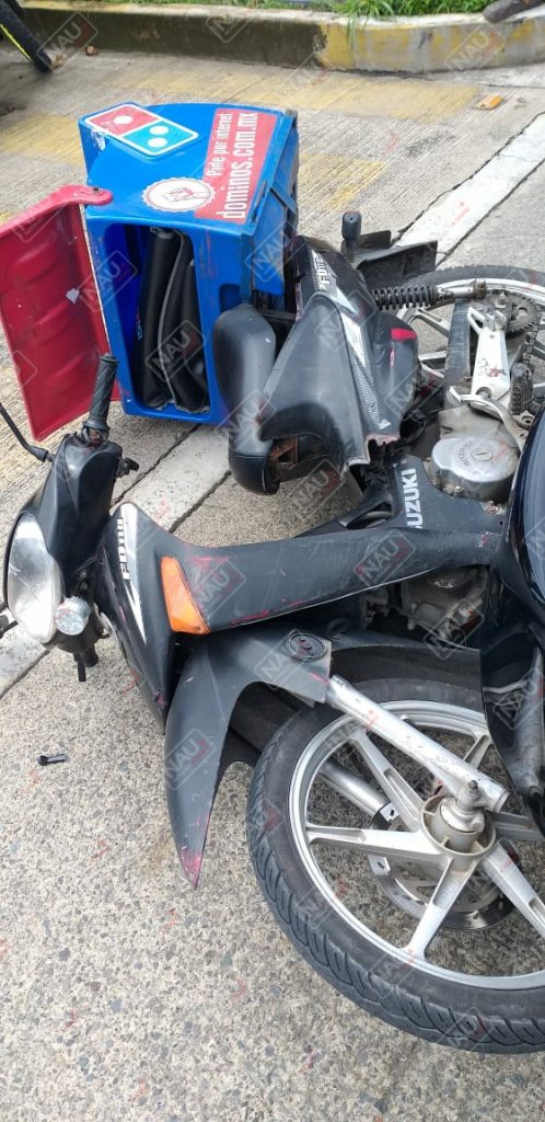 Al llegar a la calle Pirules, dio vuelta a su izquierda y le hizo corte de circulación al repartidor de Pizza, que se desplazaba en la motocicleta Suzuki 110, de color negro, conducido por Leonardo N, quien venía de sur a norte sobre la avenida Tabachines, con preferencia.