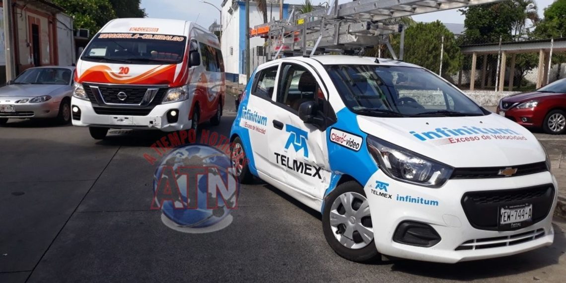 TAPACHULA, CHIAPAS. – Un accidente que se registró en la 5a avenida norte y esquina con la 3a calle oriente, entre una combi de ruta de foránea y un particular.