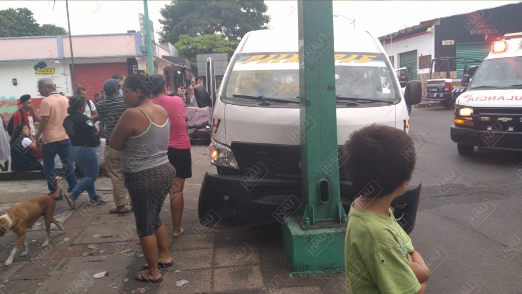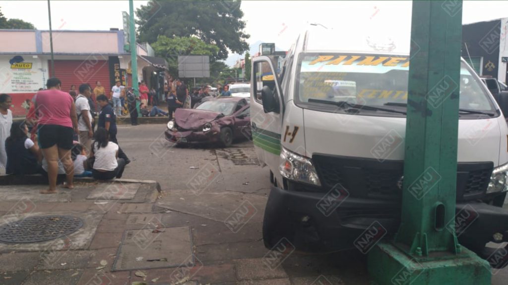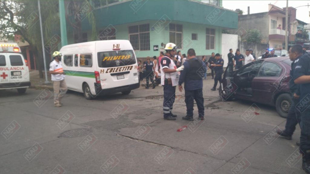 Y chocó contra la combi Urban color blanco con verde, de la ruta Palmeras, con placas de circulación 403-899-B, con número económico 9-03. El cual era conducido por Carlos N., donde resultaron con lesiones Gloria N y Jorge N., además de los pasajeros del vehículo con placas particulares.