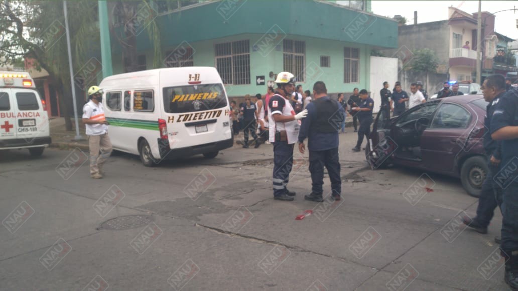 Tapachula, Chiapas. La mañana de este lunes se registró un percance entre dos vehículos, en la 7ª avenida sur y 18 calle oriente, que dejó 9 personas lesionadas que fueron atendidas por personal de la Cruz Roja y protección civil.