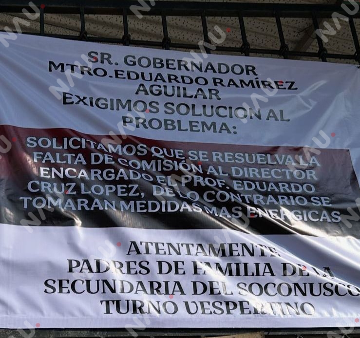 En una de las mantas exhibidas frente a la institución se lee: “Exigimos solución al problema, solicitamos que se resuelva la falta de comisión al director encargado el Prof. Eduardo Cruz López, de lo contrario se tomarán medidas más enérgicas”. Los padres de familia advirtieron que, de no obtener respuesta, realizarán acciones de protesta más contundentes.