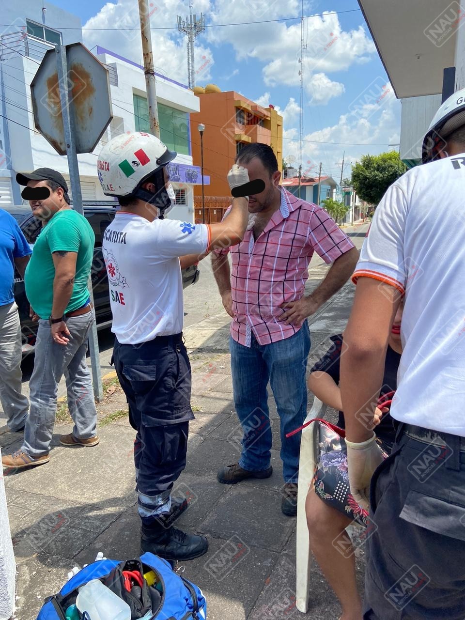 TAPACHULA, CHIAPAS. Una pareja que viajaban en un automóvil, fueron atendidos por paramédicos del Servicios Auxiliares de Emergencia, tras chocar el vehículo en que viajaban.