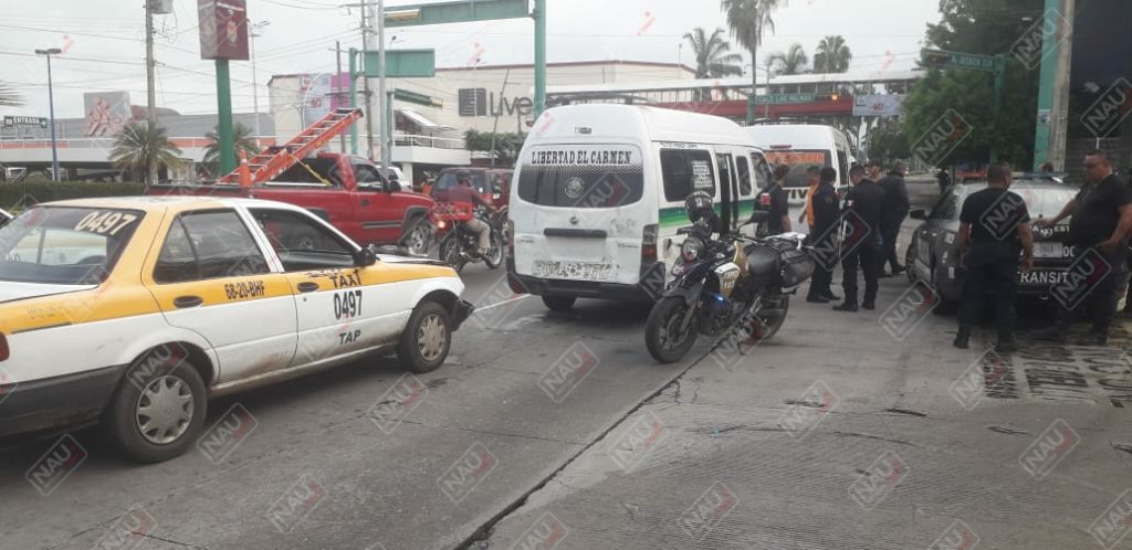 Fue la mañana de este lunes que se registró el percance, entre la unidad de pasaje nissan tsuru de color blanco con franjas amarillas, habilitado como taxi local con número económico 0497, mismo que presentan daños en la parte frontal y estaba en dirección de sur a norte sobre la 4a avenida sur.