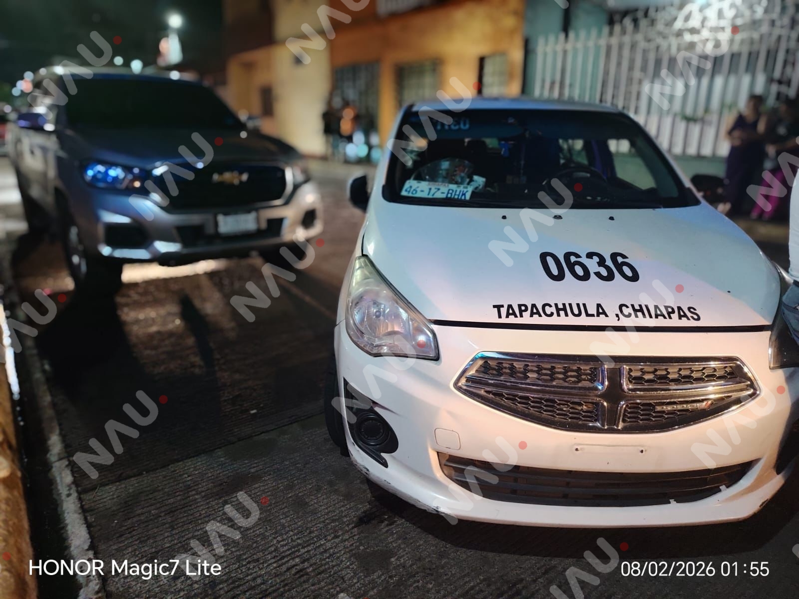 Tapachula, Chiapas.— La madrugada de este domingo 8 de febrero de 2026, se registró un percance vehicular entre una camioneta particular y un taxi del servicio público, lo que provocó la movilización de autoridades viales y de otros conductores del gremio taxista en distintos puntos de la ciudad.