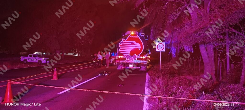 Tapachula, Chiapas.– Alrededor de las 23:00 horas se registró un accidente sobre la carretera Tapachula–Puerto Madero, a la altura de la entrada al balneario Lu’um Ha, donde una persona perdió la vida.