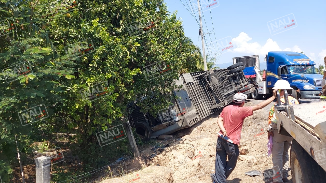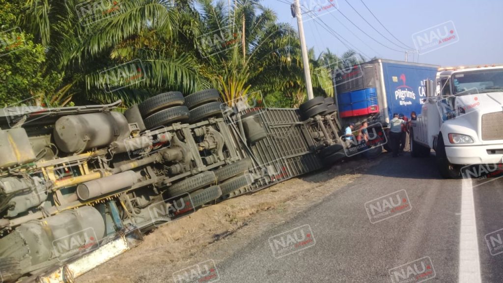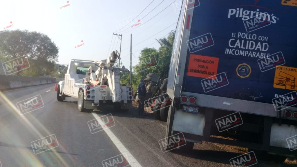 Posteriormente, al lugar acudieron diferentes corporaciones policíacas como personal de la guardia nacional división caminos, quienes al llegar localizaron la pesada unidad, la cual jalaba dos remolques cargados con varias toneladas de pollo en canal, el producto quedó dentro de las cajas secas sin que se registrara rapiña,.