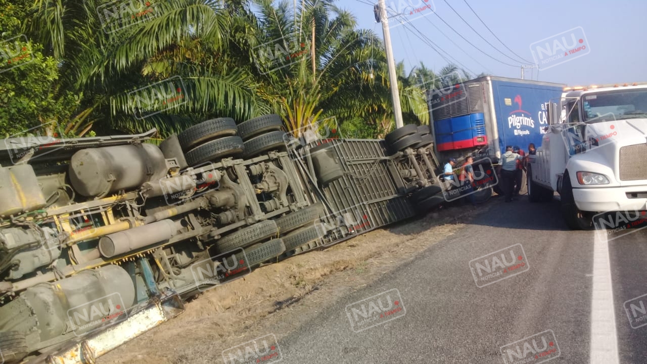 Sobre los hechos, se dio a conocer que el conductor del pesado tráiler freightliner, el cual jalaba dos remolques y que era conducido por Pablo N., el cual agregó que al ir circulando en el mencionado tramo carretero, en donde una mala maniobra originó que perdiera el control del volante y se volcara el pesado tráiler, afortunadamente en conductor resultó ileso.