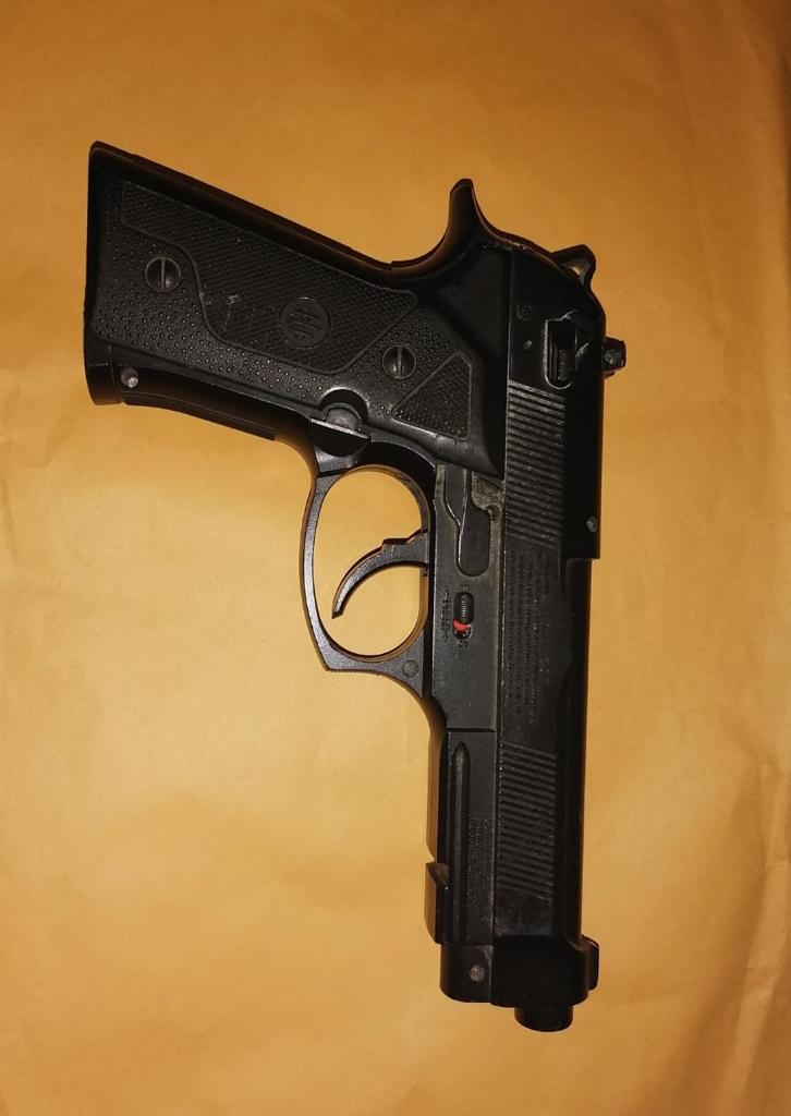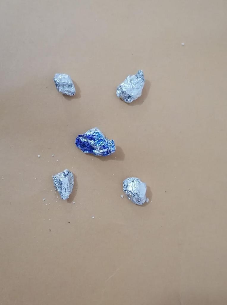 Los policías de Tapachula al hacer la inspección de rutina al detenido encontraron entre sus ropas una pistola tipo escuadra de plástico (juguete) color negra y 5 envoltorios de papel aluminio, conteniendo en su interior piedra blanca con las características del crack.