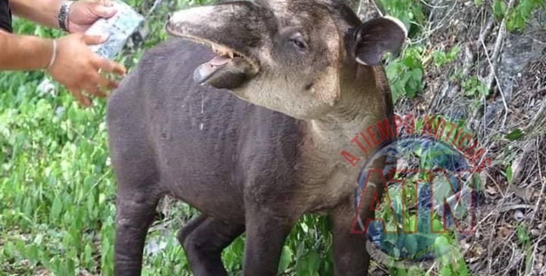 Comitán, Chiapas. Elementos de la policía federal división caminos, Localizaron a un animal de la especie Tapirus, es un género de mamíferos perisodáctilos de la familia tapiridae, conocidos vulgarmente como tapires.