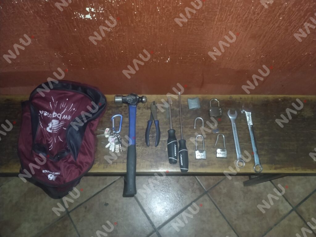 El detenido responde al nombre de Rodolfo N , de 40 años, a quien se le aseguró una mochila roja con negro, que contenía un juego de llaves, un martillo, una pinza, dos desarmadores y dos llaves españolas, objetos que habrían sido utilizados para intentar abrir el local.